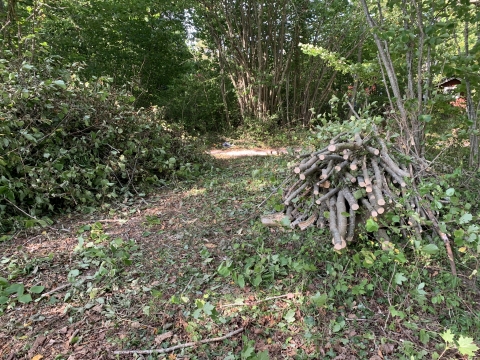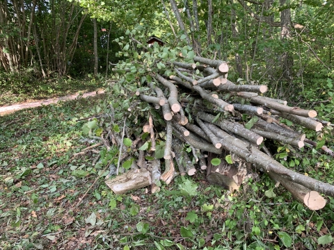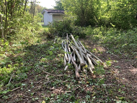 från långfredagens arbetsdag! Glädjande nog var det ovanligt många som deltog på arbetsdagen. Redan på morgonen hade den gamla rishögen gått upp i rök. Tillsammans fixade vi till vägkanterna och sikttrianglarna. Några nedfallna träd höggs upp och när vi ändå hade en professionell trädfällare, med utrustning, på plats passade vi även på att hjälpa ett par fastighetsägare att bli av med några träd på deras tomter. Med många händer som hjälptes åt och ett välvilligt lån av kärra, fixades riset bort till en ny brasa och veden kom till nytta hos grannar som nu kan njuta av vinterbrasor. Några bitar av stammarna hamnade dessutom som markeringar på anslutningsvägarna. Numera är dessa dessutom prydda med solcellslampor, så man slipper snubbla över dem om natten. Passade även på att ge stigen mellan anslutningsvägarna en lite rakare bana, för att slippa gena över en av tomterna. Efter arbetet samlades vi för en gemensam måltid, där Sanna bjöd på grillade korvar! Riktigt roligt att se så många engagerade och tänk vad mycket man hinner med när man hjälps åt!"